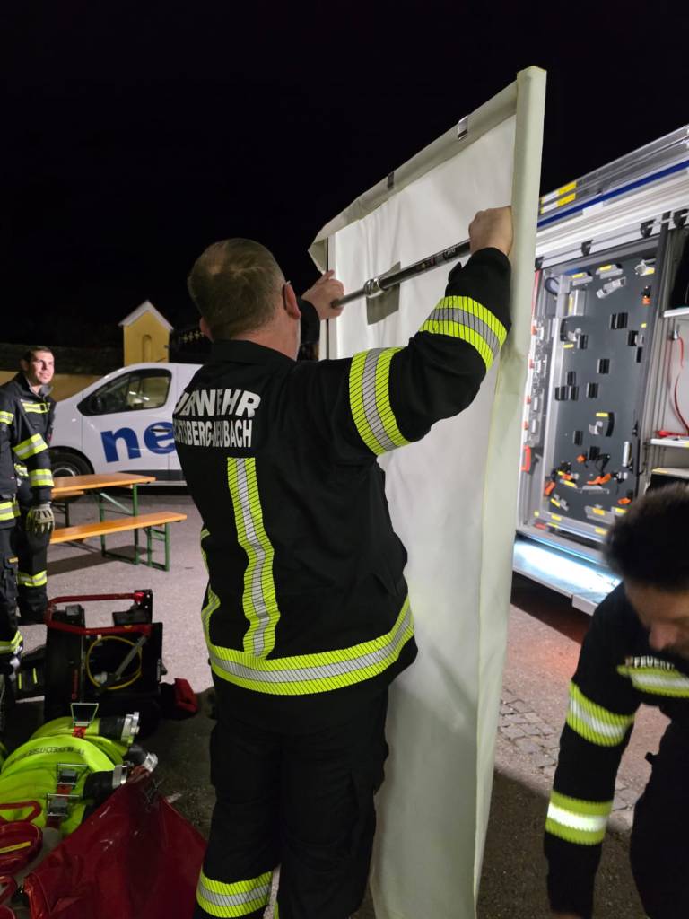 Zu รbungsbeginn wurde die FF Albrechtsberg-Neubach zu einem Brandverdacht nach Albrechtsberg in einem Sรคgewerk beordert. Nach Erkundung durch unseren รbungseinsatzleiter wurden unverzรผglich die Feuerwehren Loosdorf, Roggendorf, Schollach, Anzendorf und das Einsatzleitfahrzeug der FF Spielberg-Pielach nachalarmiert, zumal sich das รbungsszenario auf einen Dachstuhlbrand im Sรคgewerk mit zwei vermissten Personen ausdehnte. Da die Zufahrt zum รbungsobjekt nur einspurig befahrbar war, mussten sรคmtliche Fahrzeuge mit einem Einweiser retour schieben. Gleichzeitig wurde die Zubringerleitung gelegt. Aufgrund des Platzmangels war dies eine weitere Herausforderung. Zwischenzeitlich wurde die Brandbekรคmpfung und das Schรผtzen von nicht betroffenen Gebรคudeteilen und die Personenrettung mittels schwerem Atemschutz in Angriff genommen. Nach ca. 1 Stunde wurde das รbungsziel erreicht.