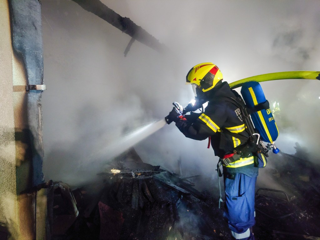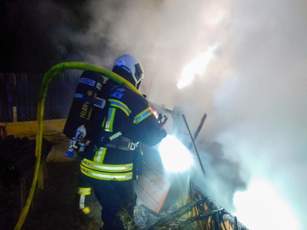 Mit drei Lรถschleitungen โ zwei im Auรenangriff und einem im Innenangriff โ konnten wir den Brand rasch unter Kontrolle bringen.โ