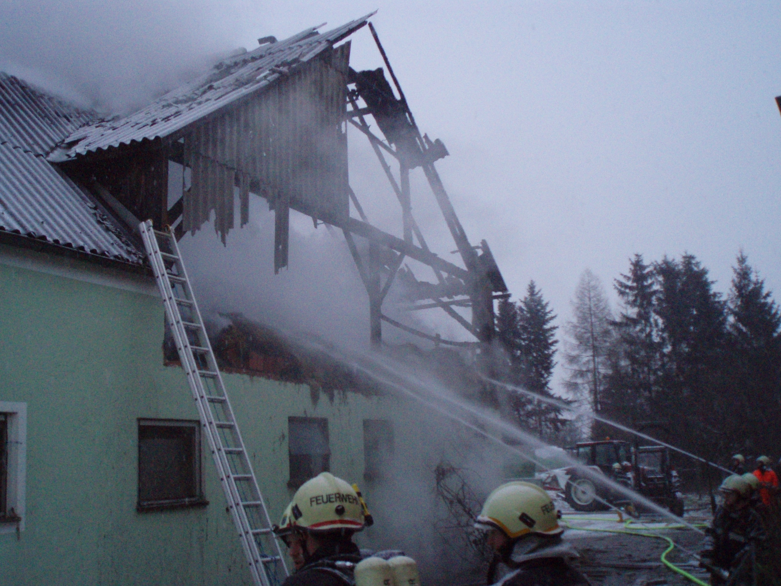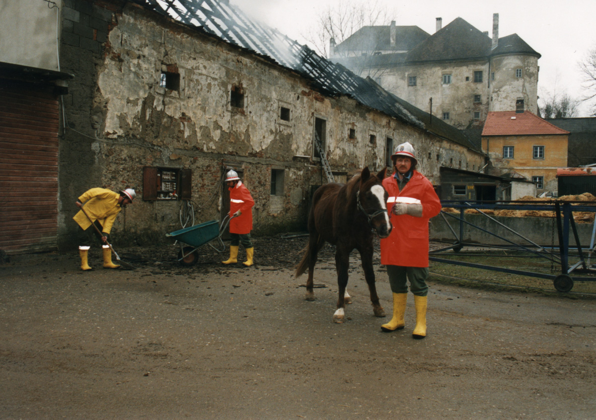 | Am 24. März um 20.19 Uhr kam es zum Brand des Dachstuhles im Reitstall des Schlosses Albrechtsberg. Schon nach einer Stunde war der Brand auf Grund des massiven Löschangriffes unter Kontrolle. Die Feuerwehr Albrechtsberg war jedoch bis in die frühen Morgenstunden mit dem Ablöschen von Glutnestern beschäftigt. Der rasche Löscherfolg konnte nur durch die gute Ortskenntnis und Übung am Objekt erzielt werden. Eingesetzte Kräfte: 9 Feuerwehren mit 150 Mann, 9 TLF bzw. RLF, 6 KLF, 3 KDOF, 1 DLK, 1 KRF-B | ![]() ![]() ![]() ![]() | |
