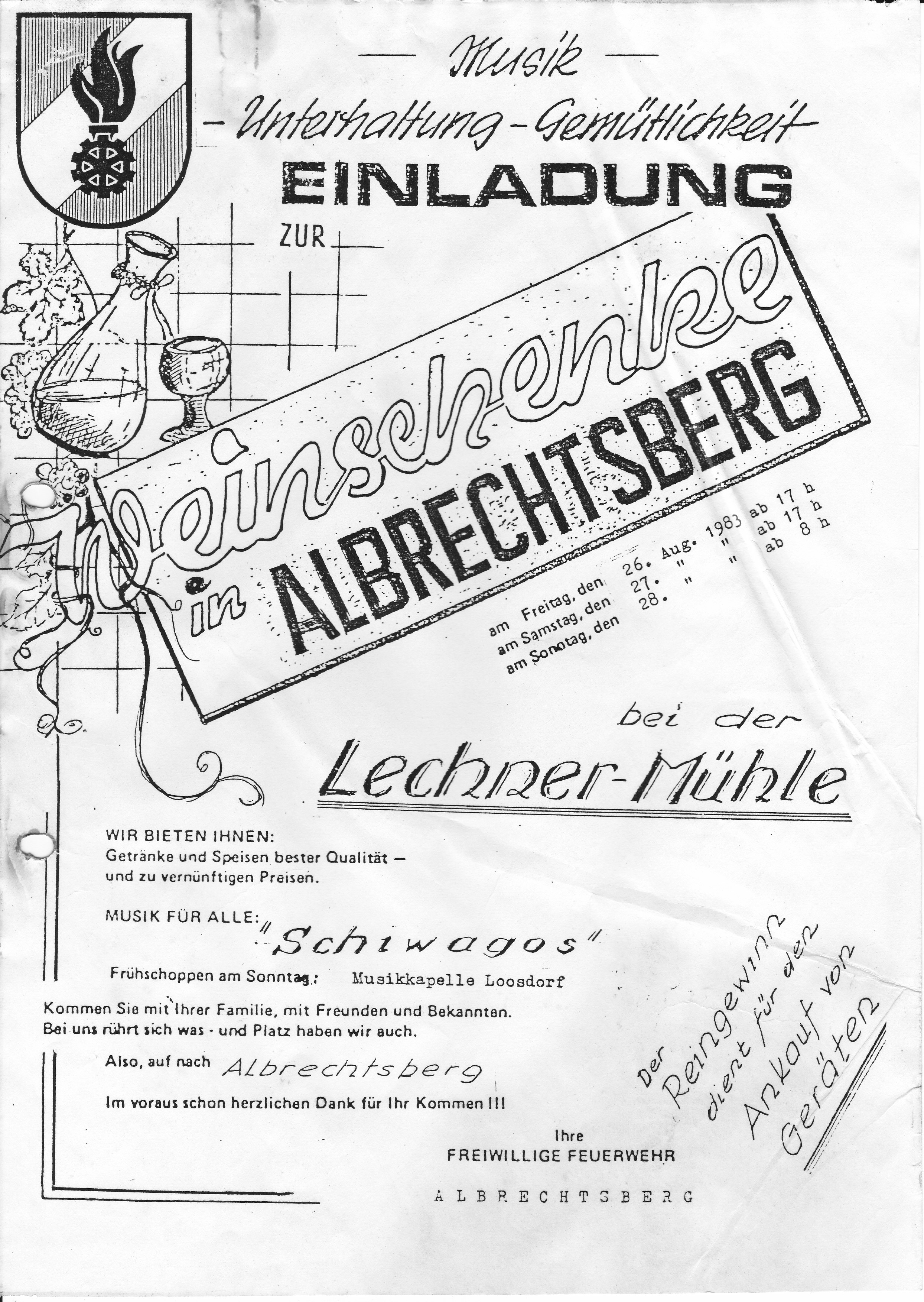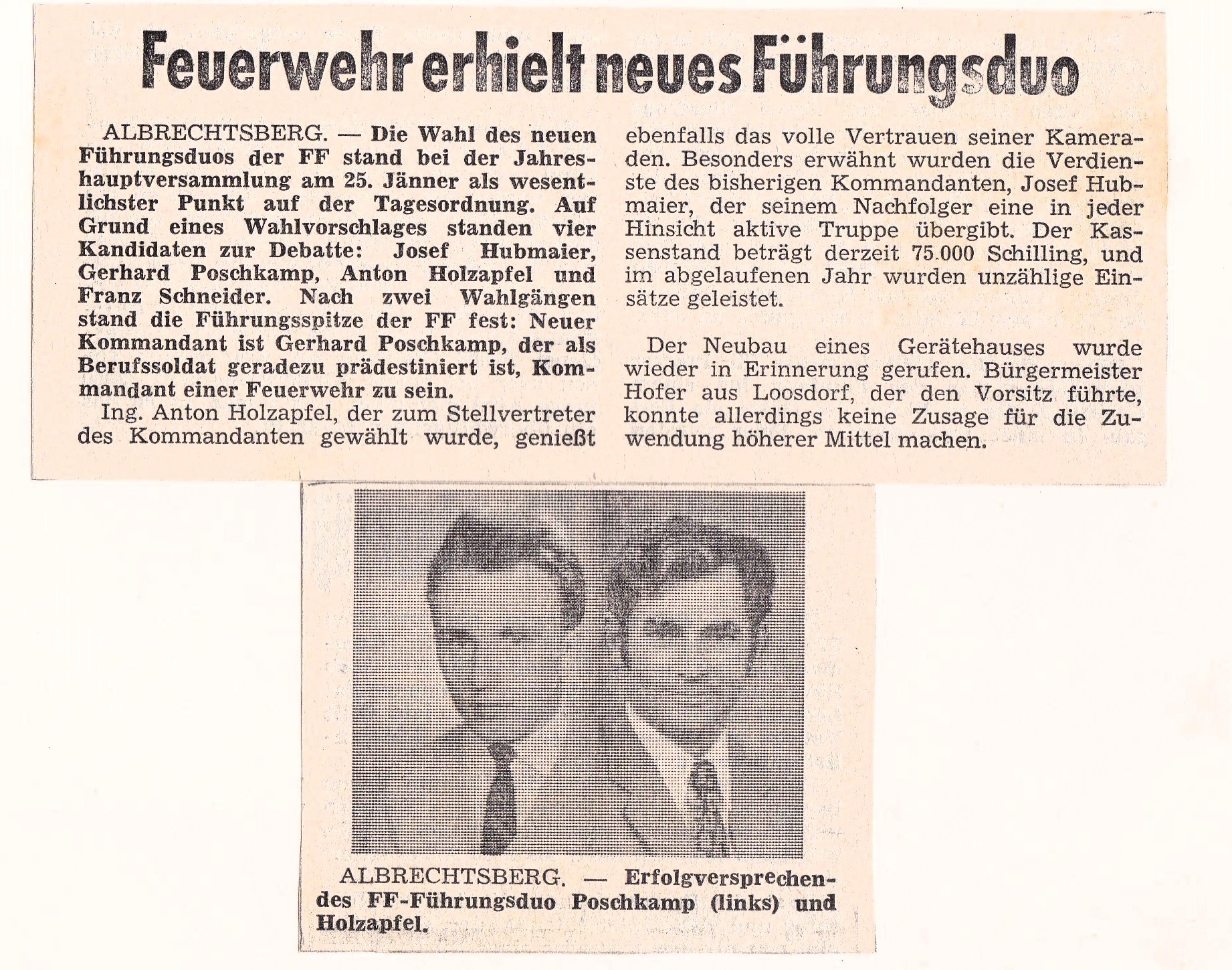 | 1956 | Umbenennung in Feuerwehr Albrechtsberg | |