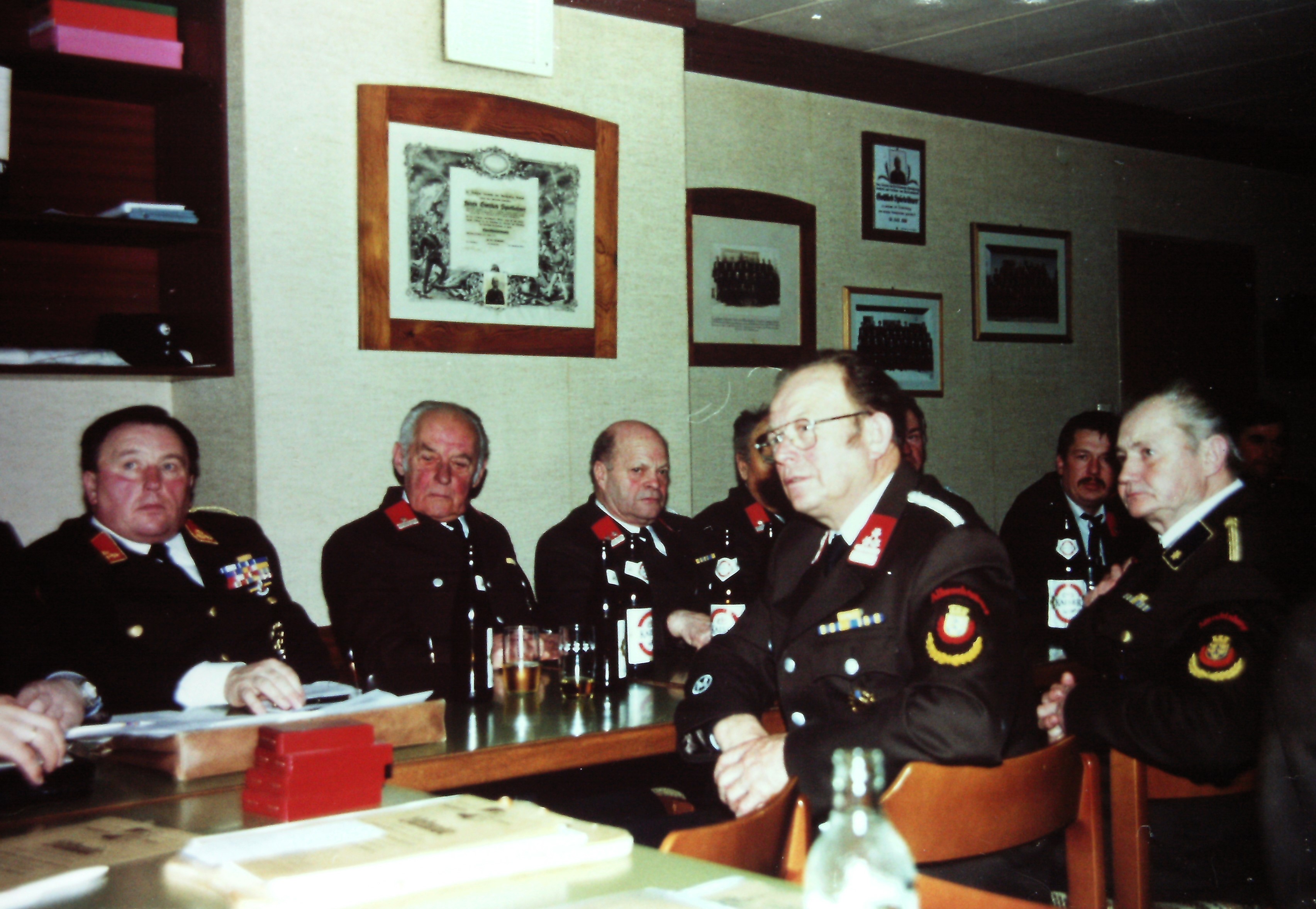 | 2004 | Eine große Gruppe von Kameraden konnte bei der Jahresmitgliederversammlung geehrt, bzw. befördert werden. Für besondere Verdienste im Feuerlöschwesen wurden Viktor Schmatzer das Ehrenzeichen in Silber und Franz Holzapfel jun. das Ehrenzeichen in Gold von Bgm. LAbg. Jahrmann verliehen. | ![]() |