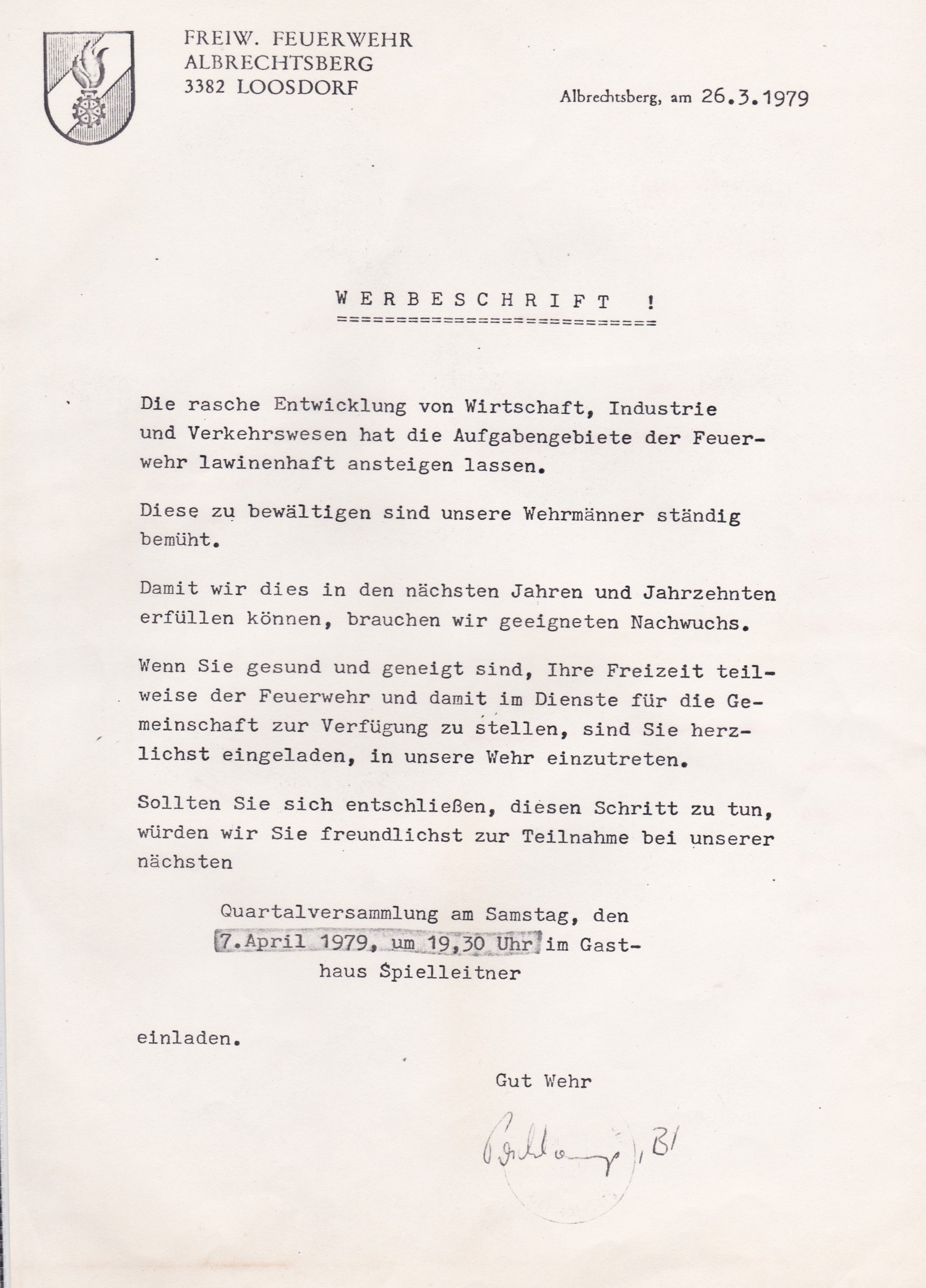 | 1978 | Übernahme eines Leichtlöschfahrzeuges von der FF Loosdorf | |