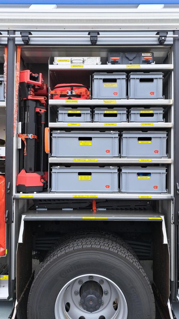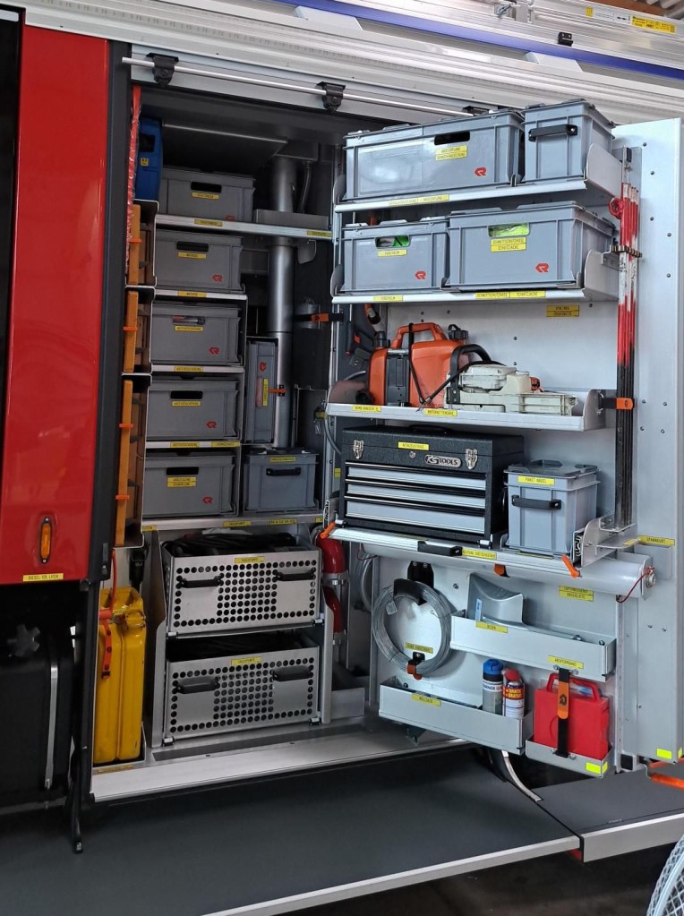 Ausstattung: Wasserwerfer, 5t Seilwinde, Hydraulisches Rettungsgerät (Akku), Wärmebildkamera, Schnellangriffseinrichtung in C, 3000L Wassertank, Straßenwaschanlage, Waldbrandausrüstung, Schadstoffausrüstung.